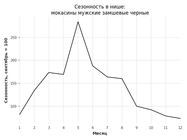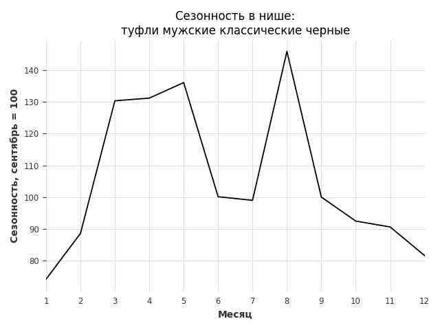Сезонность в нише слабая. Пик сезонных продаж в нише - август. В ближайшие месяцы можно ожидать сезонного спада продаж до 19%.
