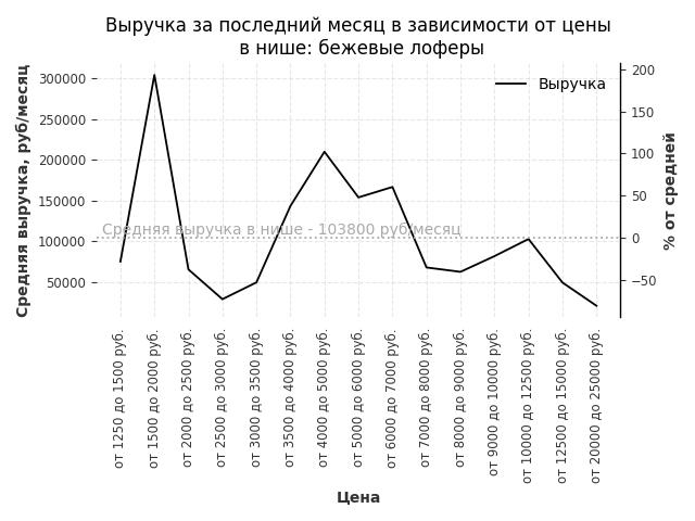 Выручка в нише в зависимости от цены