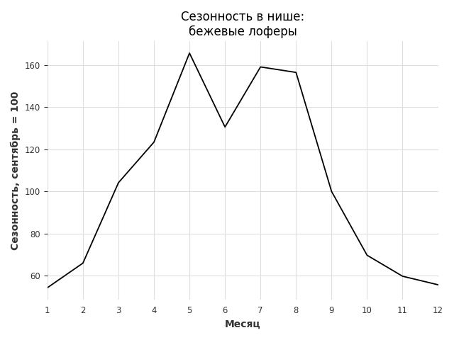 Сезонность в нише сильная. Пик сезонных продаж в нише - май. В ближайшие месяцы можно ожидать сезонного спада продаж до 27%.