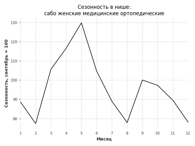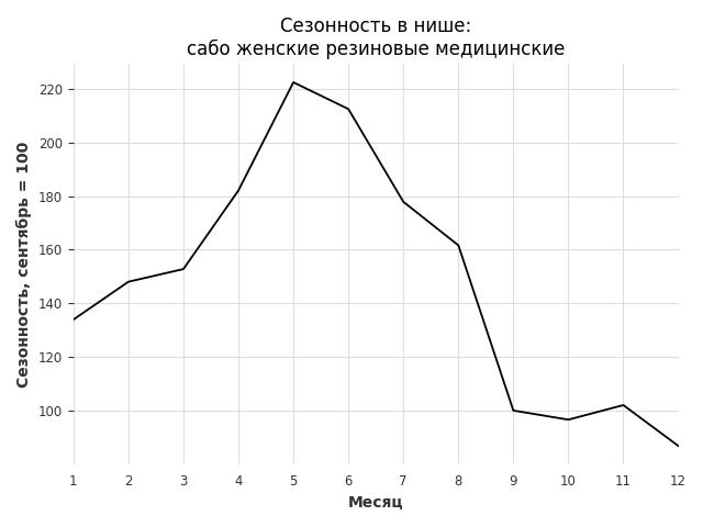 Сезонность в нише средняя. Пик сезонных продаж в нише - май. В ближайшие месяцы сезонность не будет заметно влиять на продажи.