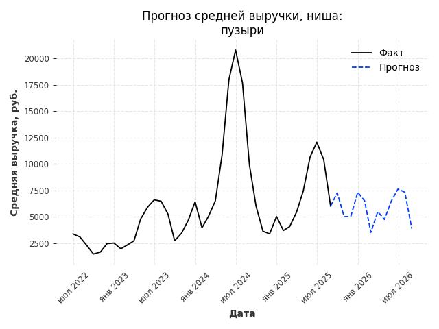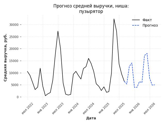 - Прогноз средней выручки в нише на следующие 12 месяцев: 5850 руб./месяц
