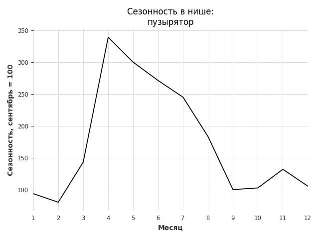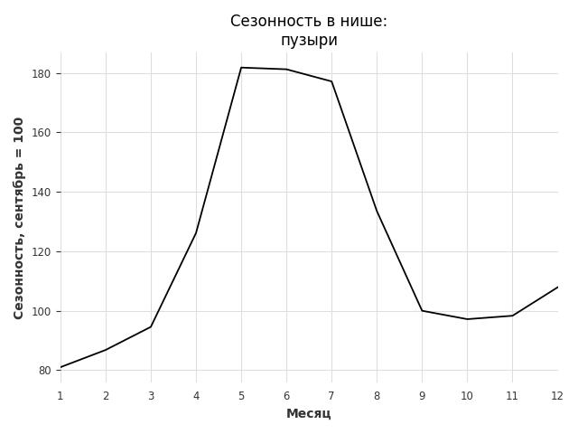 Сезонность в нише сильная. Пик сезонных продаж в нише - апрель. В ближайшие месяцы можно ожидать сезонного роста продаж до 31%.