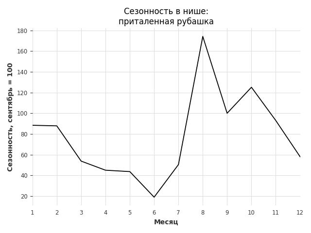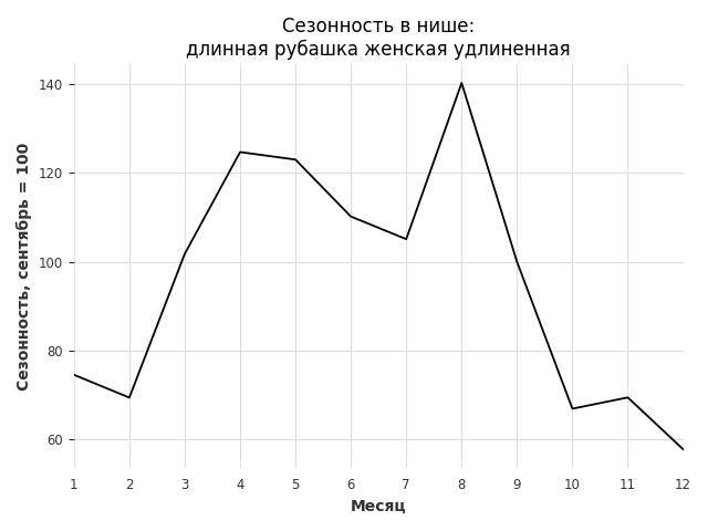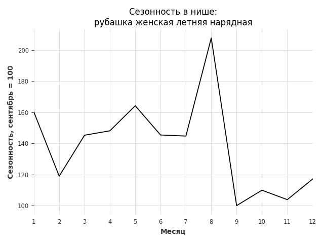 Сезонность в нише средняя. Пик сезонных продаж в нише - август. В ближайшие месяцы можно ожидать сезонного роста продаж до 17%.