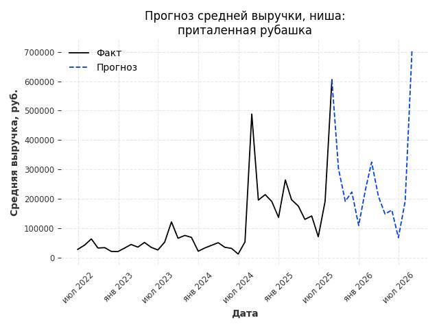 - Прогноз средней выручки на ближайшие 12 месяцев: 196606 руб./месяц
