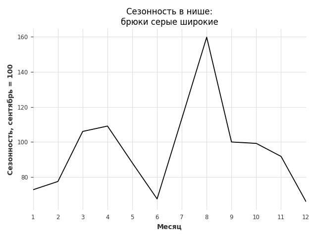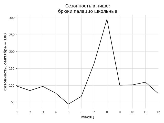 Сезонность в нише сильная. Пик сезонных продаж в нише - август. В ближайшие месяцы сезонность не будет заметно влиять на продажи.