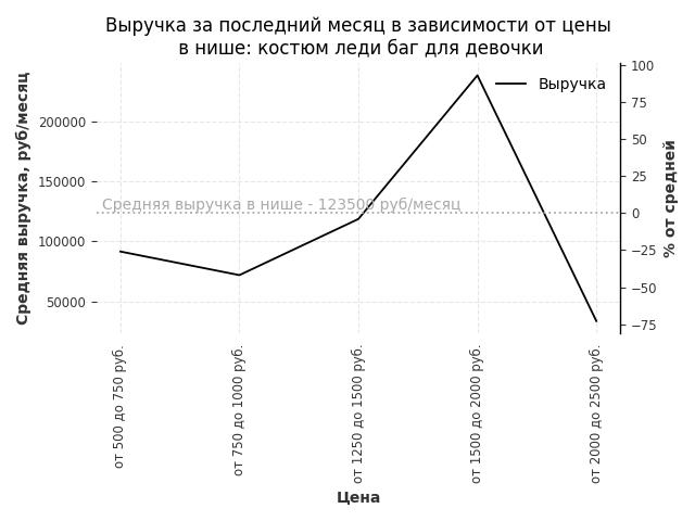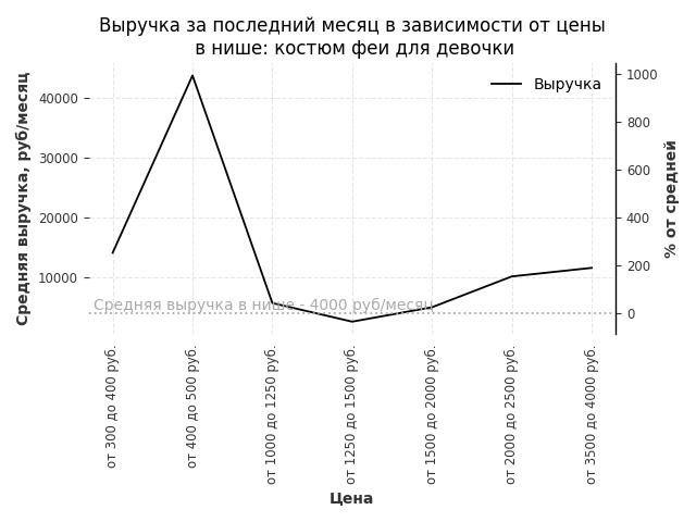 Выручка в нише в зависимости от цены