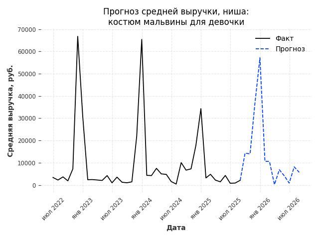 - Прогноз изменения средней выручки: 16504 руб.