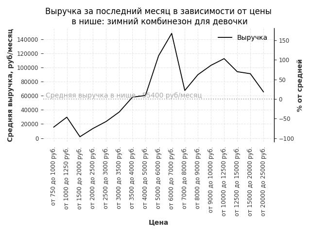 Выручка в нише в зависимости от цены