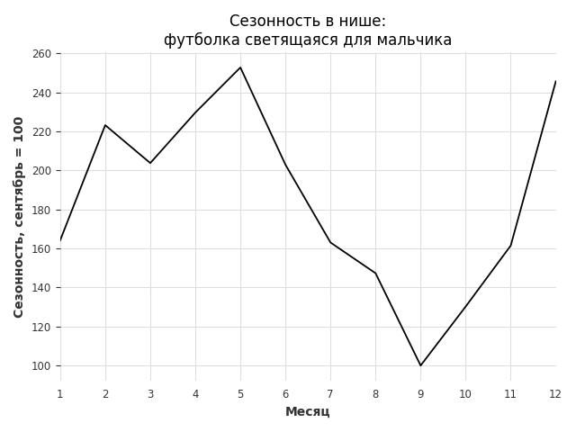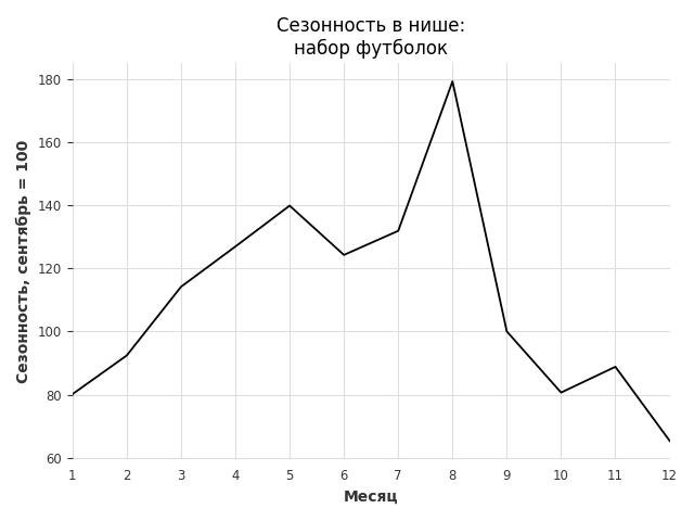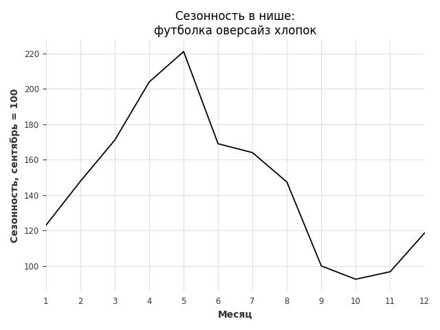 Сезонность в нише средняя. Пик сезонных продаж в нише - май. В ближайшие месяцы сезонность не будет заметно влиять на продажи.