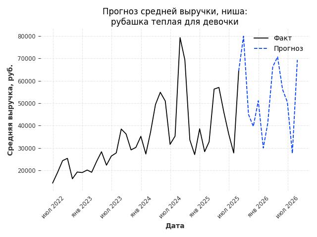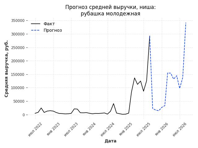 - Прогноз средней выручки на ближайшие 12 месяцев: 116789 руб./месяц