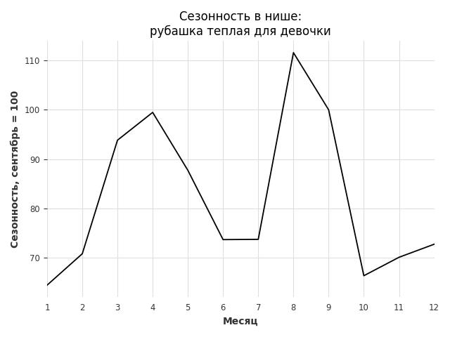 Сезонность в нише сильная. Пик сезонных продаж в нише - август. В ближайшие месяцы можно ожидать сезонного роста продаж до 18%.
