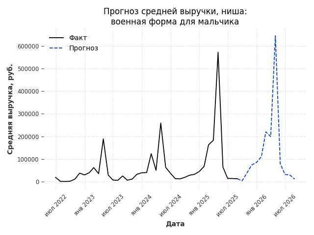 - Прогноз изменения средней выручки: 26119 руб.