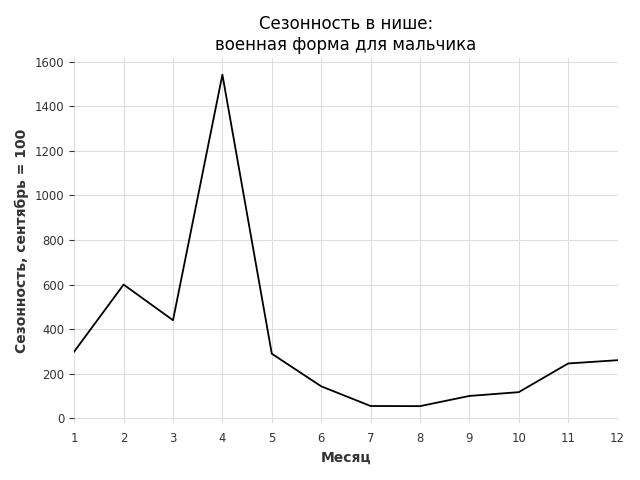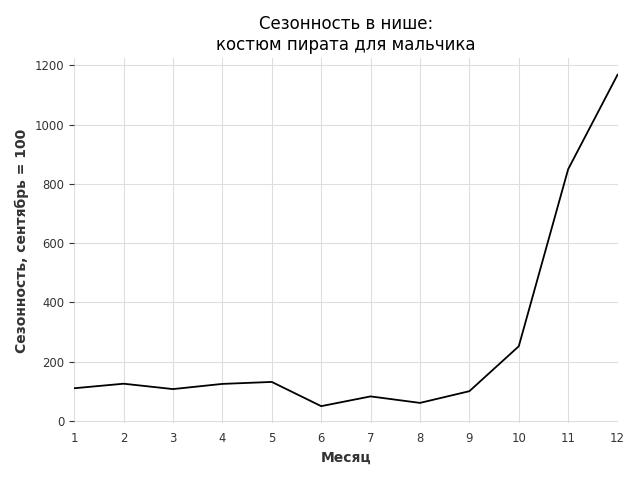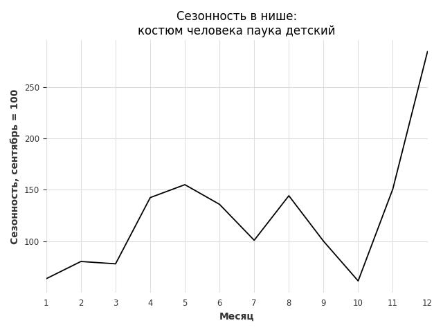 Сезонность в нише сильная. Пик сезонных продаж в нише - декабрь. В ближайшие месяцы можно ожидать сезонного роста продаж до 184%.