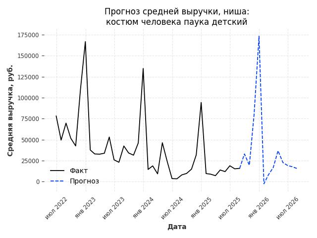 - Прогноз средней выручки в нише на следующие 12 месяцев: 29813 руб./месяц