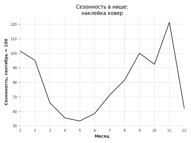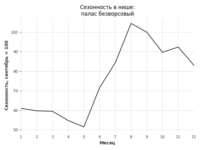 Сезонность в нише средняя. Пик сезонных продаж в нише - ноябрь. В ближайшие месяцы сезонность не будет заметно влиять на продажи.