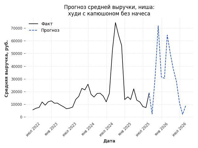 - Прогноз изменения средней выручки: 2606 руб.