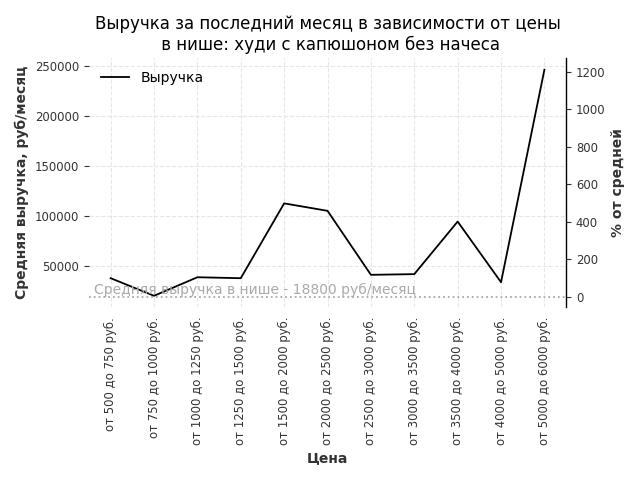 Выручка в нише в зависимости от цены
