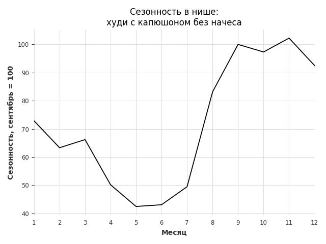 Сезонность в нише средняя. Пик сезонных продаж в нише - ноябрь. В ближайшие месяцы сезонность не будет заметно влиять на продажи.