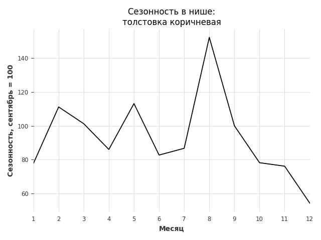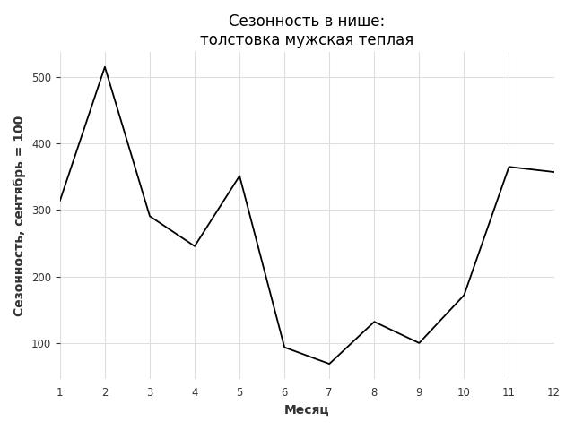 Сезонность в нише сильная. Пик сезонных продаж в нише - февраль. В ближайшие месяцы можно ожидать сезонного роста продаж до 265%.