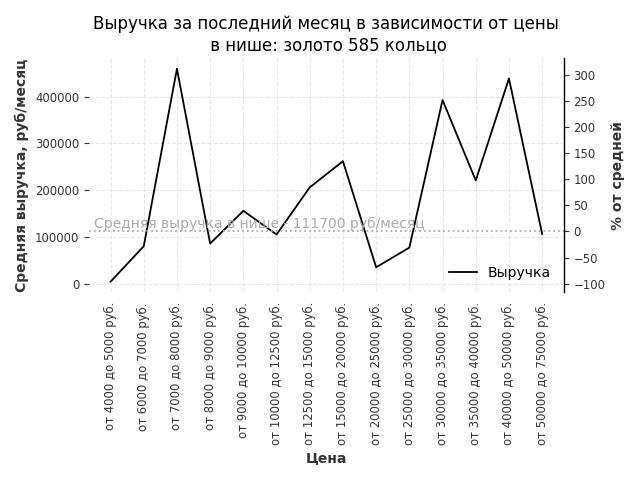 Выручка в нише в зависимости от цены