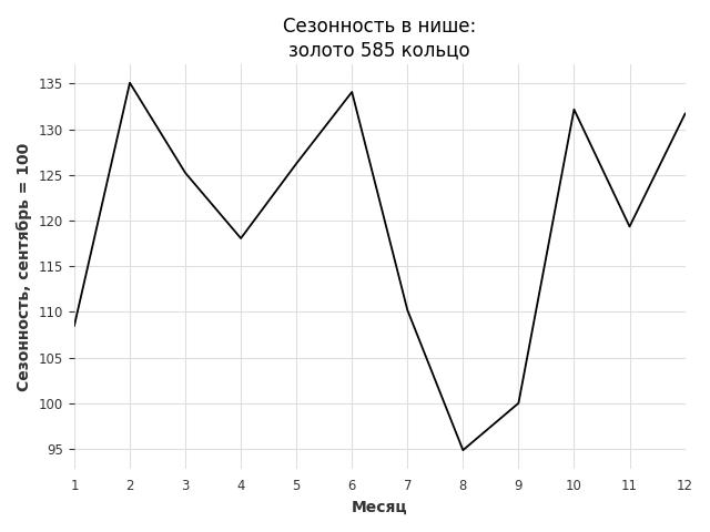 Сезонность в нише слабая. Пик сезонных продаж в нише - февраль. В ближайшие месяцы можно ожидать сезонного роста продаж до 32%.
