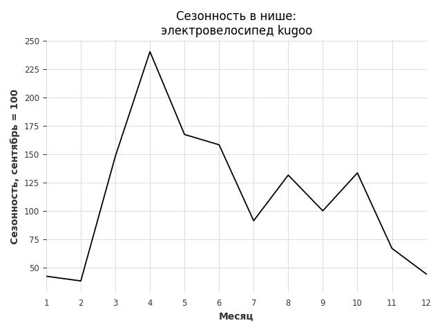 Сезонность в нише сильная. Пик сезонных продаж в нише - апрель. В ближайшие месяцы можно ожидать сезонного спада продаж до 56%.