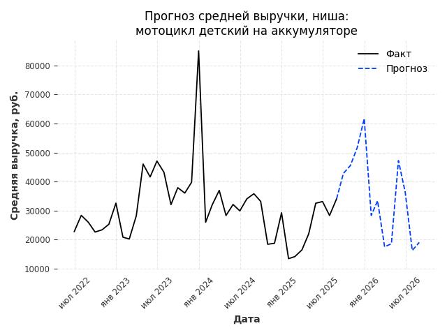 - Прогноз изменения средней выручки: 11833 руб.