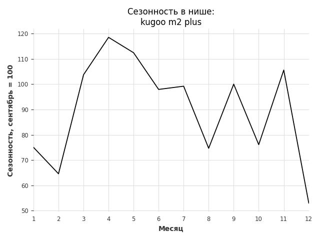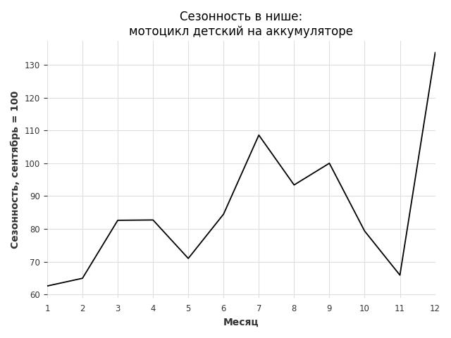 Сезонность в нише средняя. Пик сезонных продаж в нише - декабрь. В ближайшие месяцы сезонность не будет заметно влиять на продажи.