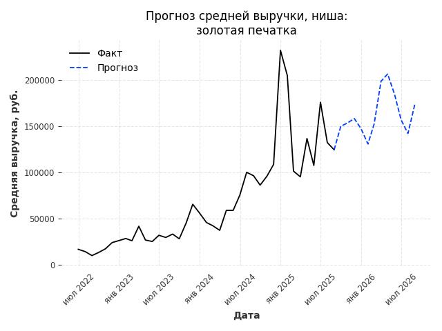 - Прогноз средней выручки в нише на следующие 12 месяцев: 221147 руб./месяц