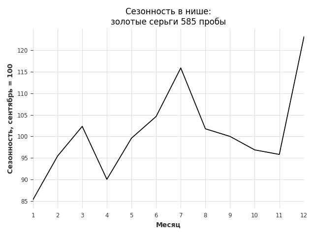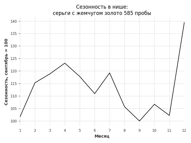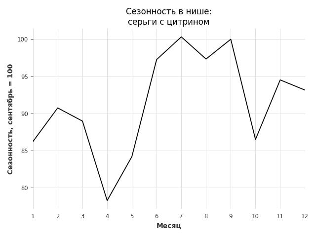 Сезонность в нише слабая. Пик сезонных продаж в нише - декабрь. В ближайшие месяцы можно ожидать сезонного роста продаж до 39%.