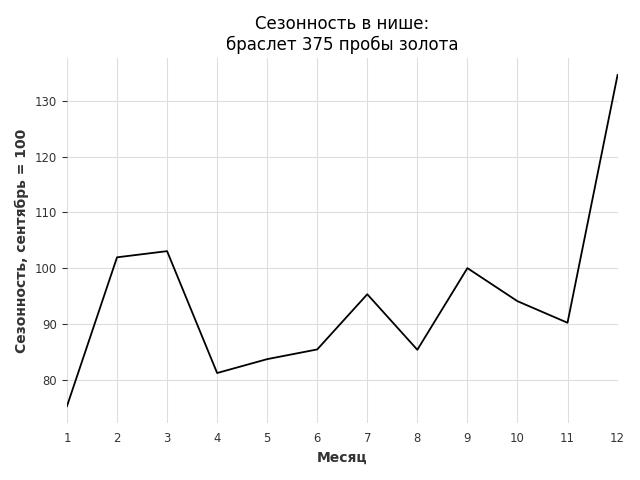 Сезонность в нише слабая. Пик сезонных продаж в нише - декабрь. В ближайшие месяцы можно ожидать сезонного роста продаж до 26%.