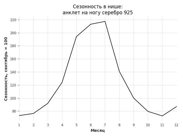 Сезонность в нише средняя. Пик сезонных продаж в нише - июль. В ближайшие месяцы можно ожидать сезонного спада продаж до 28%.