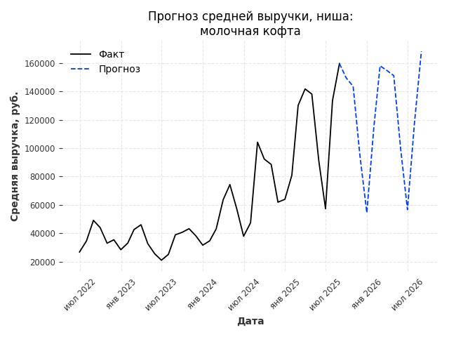 - Прогноз средней выручки на ближайшие 12 месяцев: 70896 руб./месяц