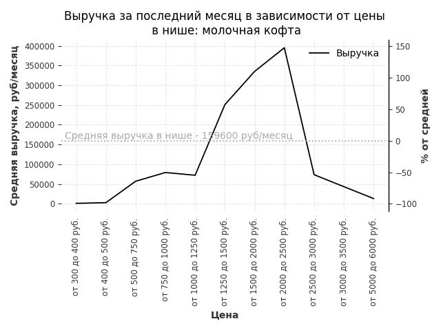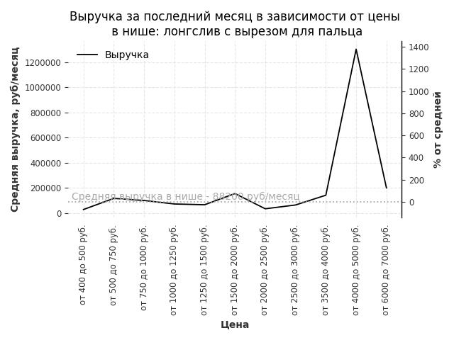 Выручка в нише в зависимости от цены