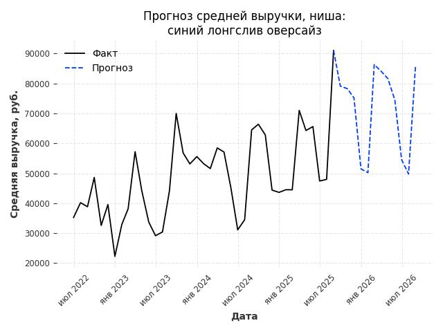 - Прогноз средней выручки на ближайшие 12 месяцев: 84939 руб./месяц