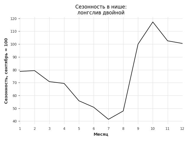 Сезонность в нише средняя. Пик сезонных продаж в нише - октябрь. В ближайшие месяцы сезонность не будет заметно влиять на продажи.