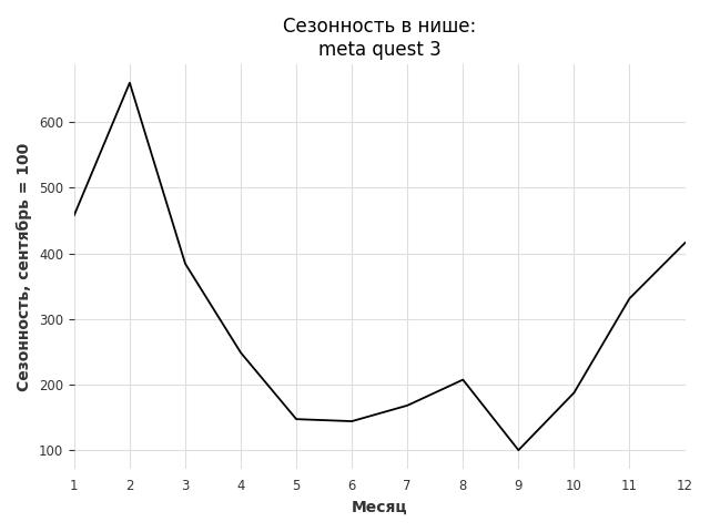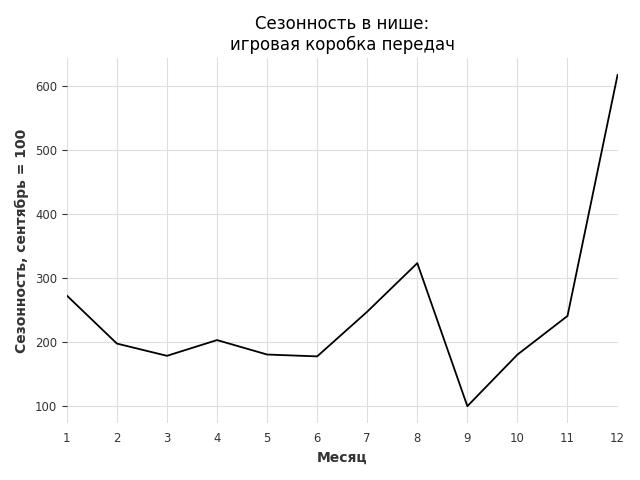 Сезонность в нише сильная. Пик сезонных продаж в нише - февраль. В ближайшие месяцы можно ожидать сезонного роста продаж до 316%.