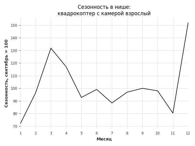 Сезонность в нише сильная. Пик сезонных продаж в нише - декабрь. В ближайшие месяцы можно ожидать сезонного роста продаж до 516%.