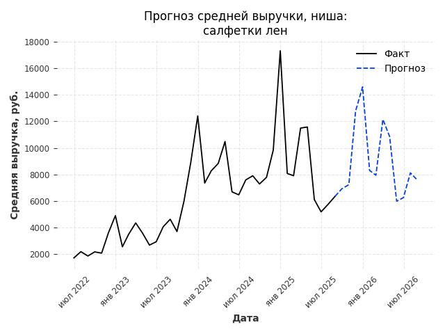 - Прогноз средней выручки на ближайшие 12 месяцев: 14709 руб./месяц