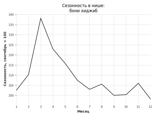Сезонность в нише слабая. Пик сезонных продаж в нише - октябрь. В ближайшие месяцы можно ожидать сезонного роста продаж до 30%.