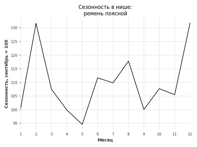 Сезонность в нише слабая. Пик сезонных продаж в нише - декабрь. В ближайшие месяцы можно ожидать сезонного роста продаж до 31%.