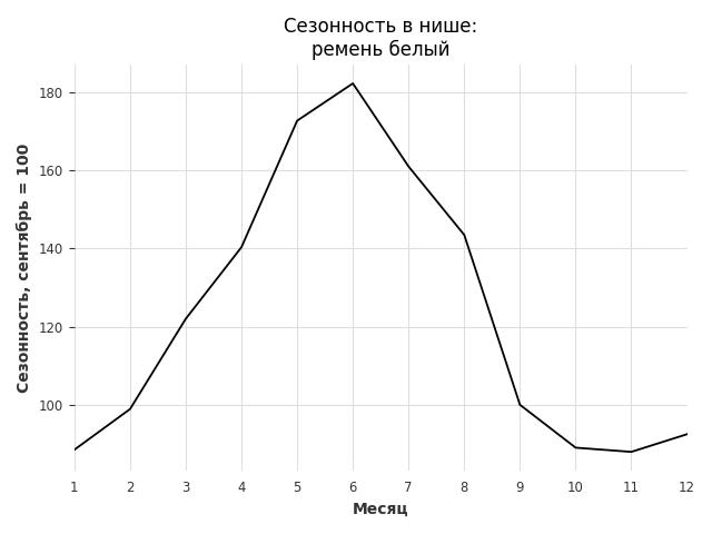 Сезонность в нише средняя. Пик сезонных продаж в нише - июнь. В ближайшие месяцы можно ожидать сезонного спада продаж до 13%.