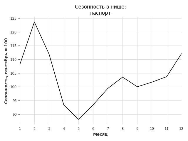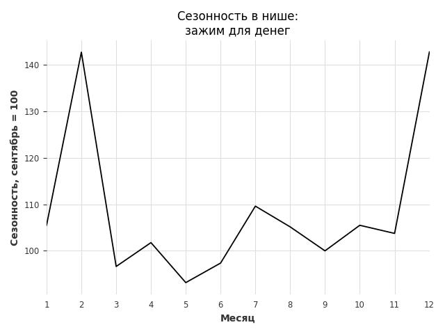 Сезонность в нише слабая. Пик сезонных продаж в нише - декабрь. В ближайшие месяцы можно ожидать сезонного роста продаж до 42%.