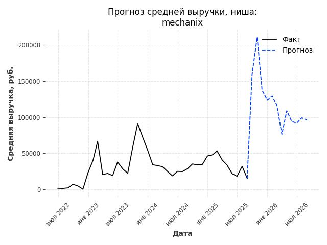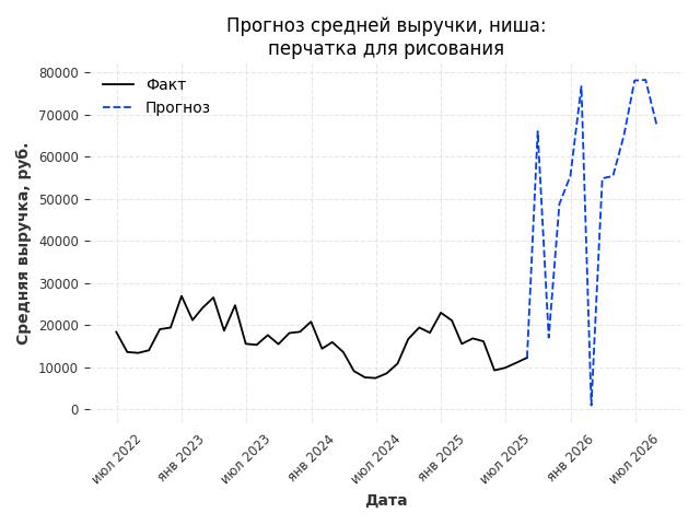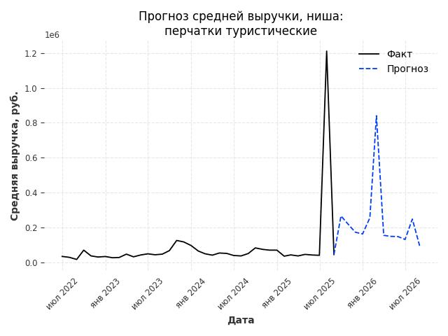 - Прогноз изменения средней выручки: 87184 руб.